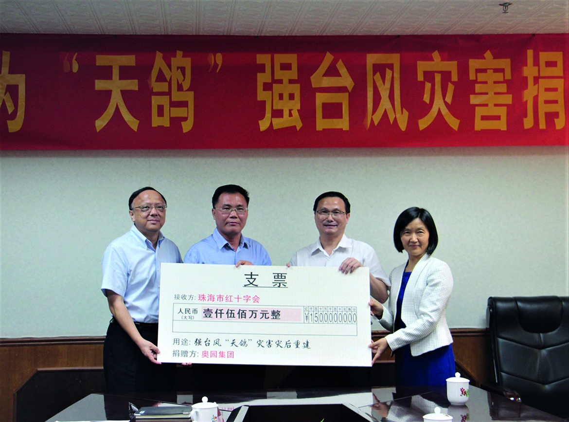 2017年,中国MK官方网页版集团为珠海“天鸽”强台风灾后重建捐赠1500万