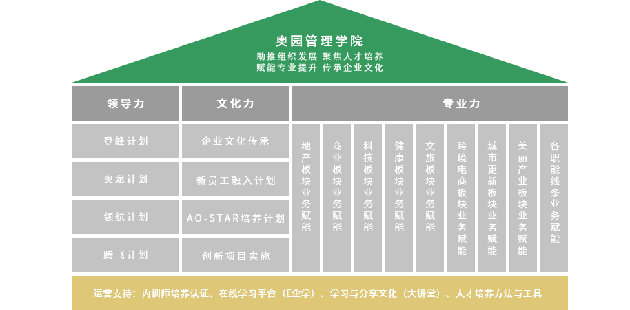 中国MK官方网页版集团一贯高度重视人才培养,集团管理学院覆盖各层级员工开展人才培养项目,帮助员工持续成长及发展。学院已形成“三纵三横”教学体系,致力打造领导力、文化力和专业力三大支柱能力培养体系,同时积极开展人才梯队建设项目、业务培训赋能项目、业界经验交流项目三类培训项目。从专业到管理,从学习到实践,学院全方位地帮助员工提升知识、技能和素质,满足员工职业发展所需,助力集团经营目标达成。