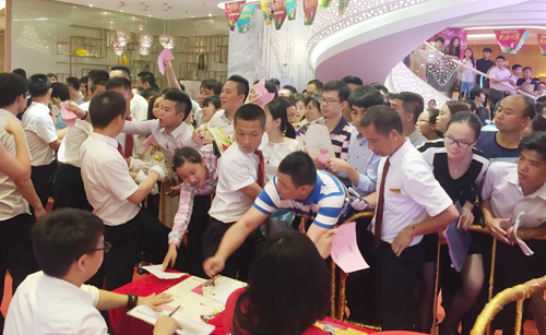 从早上7点开始就有大批客户来现场签到、排队等候,看不到尾的长龙预示着一场严酷的抢铺大战蓄势待发。10点开始,30分钟售罄,16秒一套的速度再创奇迹!