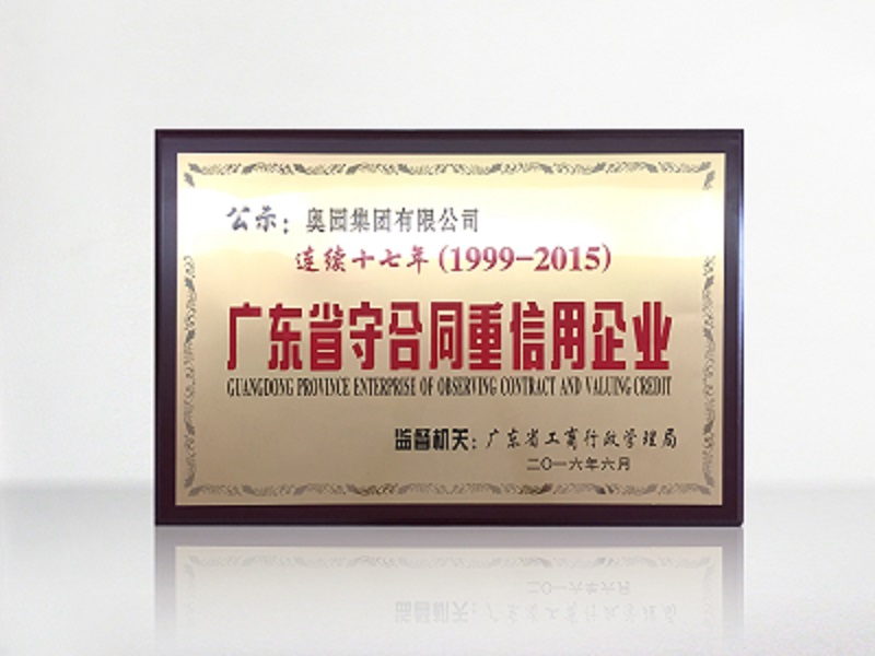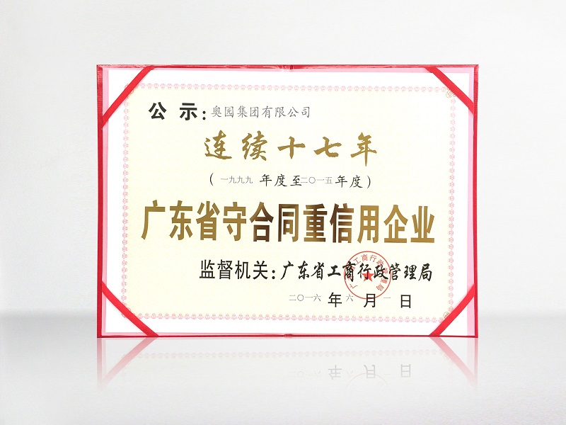 奥团连续十七年荣获“广东省守合同重信用企业”,充分体现了“高效、诚信、责任”的企业精神,体现MK官方网页版重视合同管理和履行企业责任,不断提升企业品牌知名度与美誉度,受到了政府及社会各界的一致好评和高度认可。