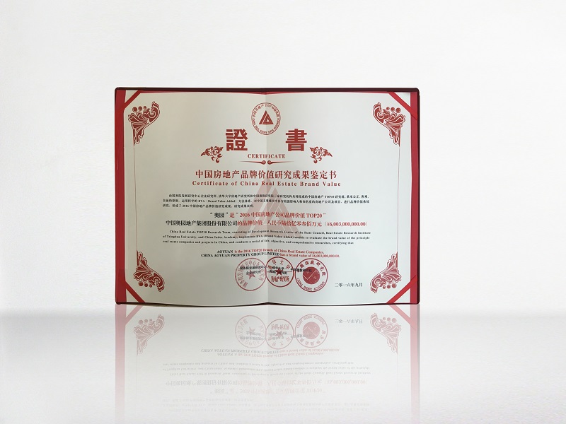 MK官方网页版荣获“2016中国房地产公司品牌价值TOP20”证书