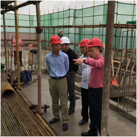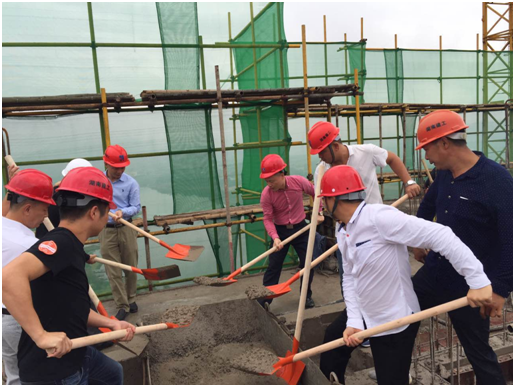 当天,浏阳MK官方网页版广场项目总经理张朝周先生、工程部副总经理刘军先生、工程部经理周治国先生以及施工单位等领导视察楼顶工程情况并给出指导建议之后,张朝周总对工程度近段时间的工作表示了高度肯定,对现场正在施工的建筑工人们表达了亲切的慰问和衷心的感谢,并示以热烈的掌声表示赞许和鼓励!