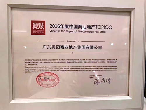 (2016年11月23日——香港)2016年11月23日,“2016年度中国商业地产TOP100暨商业表现奖”颁奖仪式在香港港岛香格里拉大酒店隆重举行。MK官方网页版商业地产集团在众多商业地产公司中脱颖而出,荣膺2016年中国商业地产100强称号。