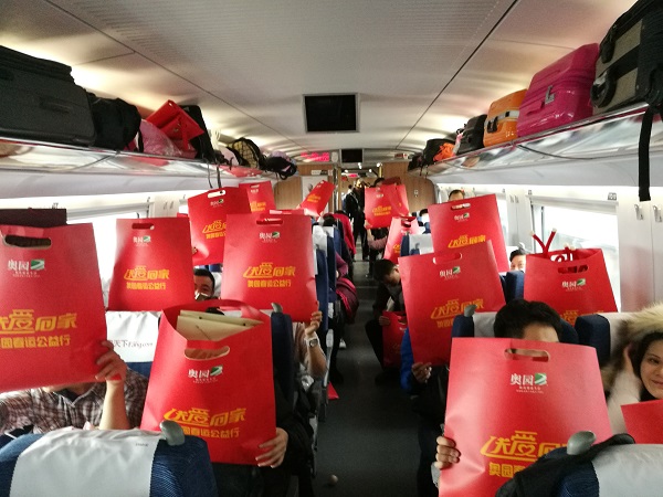 1月18日,MK官方网页版爱心高铁专列正式启程。活动现场,受助者在高铁站参加简短而温馨的送站仪式,MK官方网页版为乘客送上了“福字大礼包”。在全体人员合影留念后,满怀喜悦的乘客踏上了返乡的旅程,列车于当天11:20准时发车。