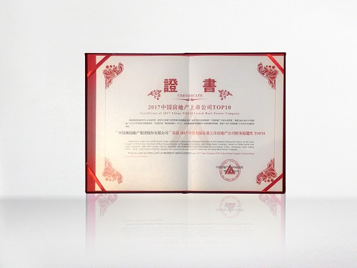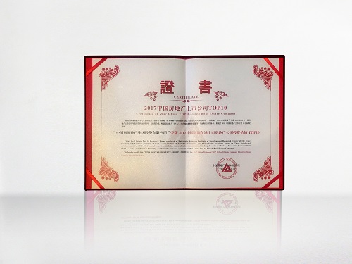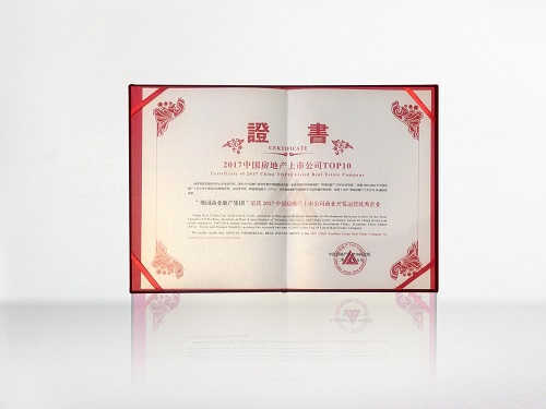 “2017中国大陆在港上市房地产公司投资价值TOP10”证书