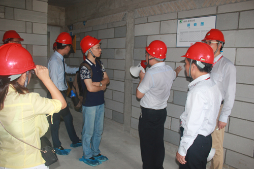 随后,受邀业主、客户在工程师及置业经理的带领下进入工地,全程陪同为客户详细讲解项目采用建筑材料、施工工序以及相关技术层面的问题。工程“样板先行”,为了更直观地展示建筑品质,此次活动特地开放了工法操作样板区,这是工程施工的标准示范区,每一道工序都必须严格按照标准施工,定期组织施工方、监理及工程部门进行验收,合格后方可进行下一道工序,确保施工质量符合要求。