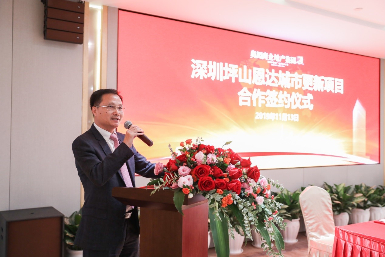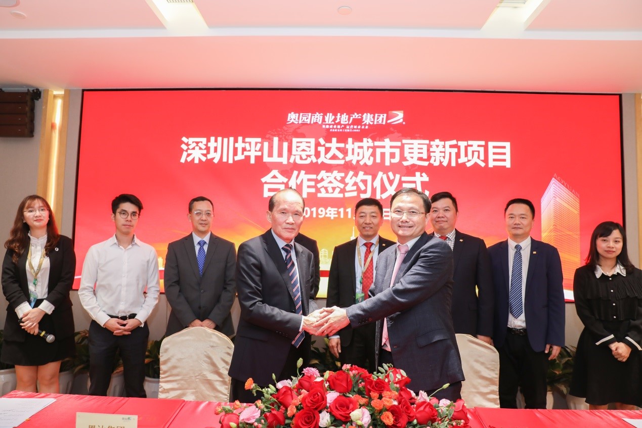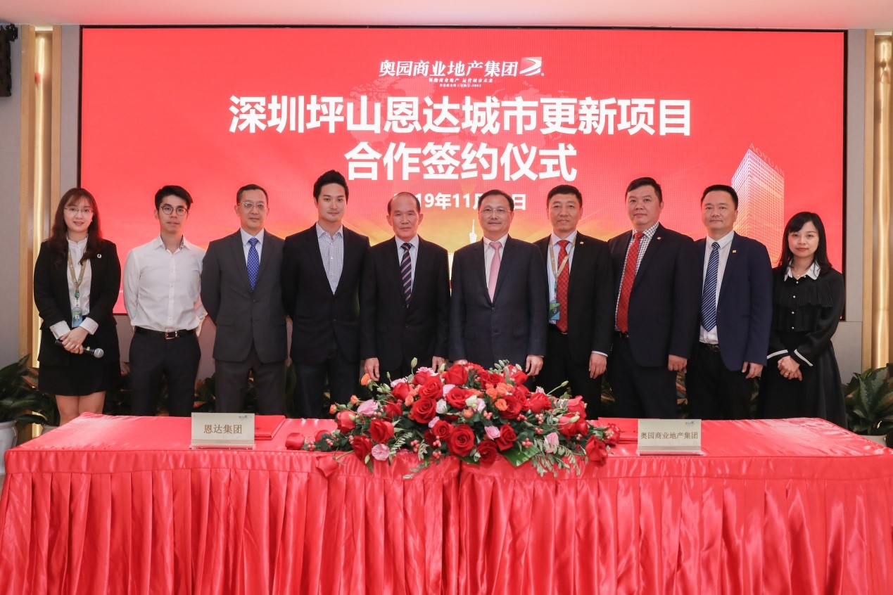 随后,在与会领导的见证下,双方签订了深圳坪山恩达项目合作协议。深圳坪山恩达项目,位于坪山区龙田街道,总占地面积约 7.3 万㎡,总建筑面积达20多万平米。项目位置优越、交通方便,发展潜力巨大。