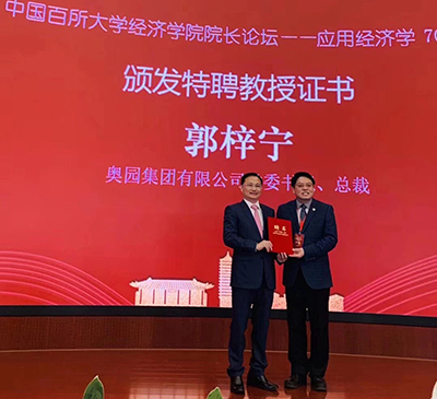 在此前的2017年,郭梓宁总裁被聘为北大经济学院硕士研究生校外导师。2019年6月,郭梓宁总裁到北京大学访学一年期满,其撰写的论文《县域商业综合体对新型城镇化建设的促进作用》获导师孙祁祥教授高度评价并推荐发表在北大校刊。