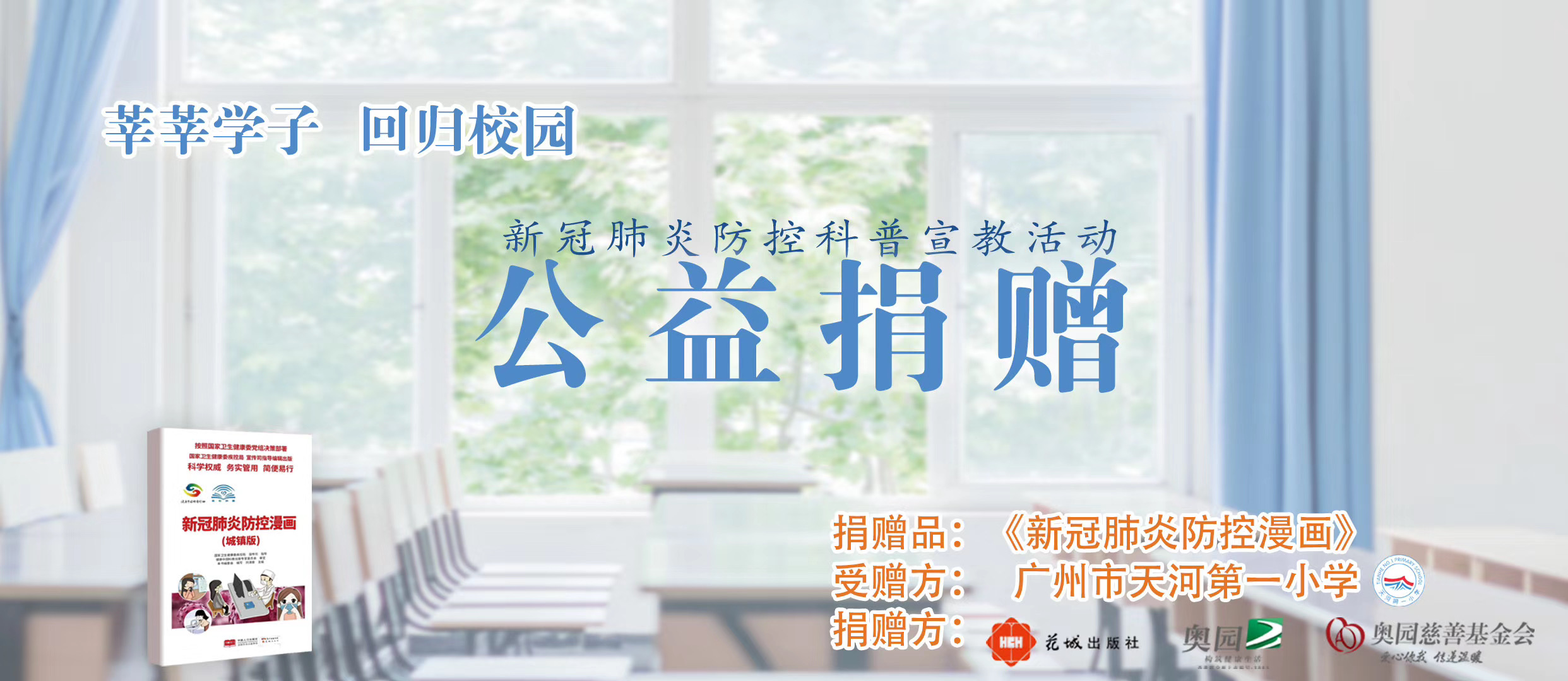 近日,中国MK官方网页版集团、MK官方网页版慈善基金会联手花城出版社向广东省数十所中小学捐赠数万册《新冠肺炎防控漫画》,并于5月13日-15号分别在广州东风东路小学、中大附中和广州市天河一小举行捐赠仪式。广州市越秀区教育局副局长陈晓,花城出版社社长肖延兵、副社长蔡彬,中大附中校长严钦熙,东风东路小学校长彭娅、教导主任邹建成,中国MK官方网页版集团党委副书记林莉、集团品牌管理中心负责人戴远程出席捐赠仪式。
