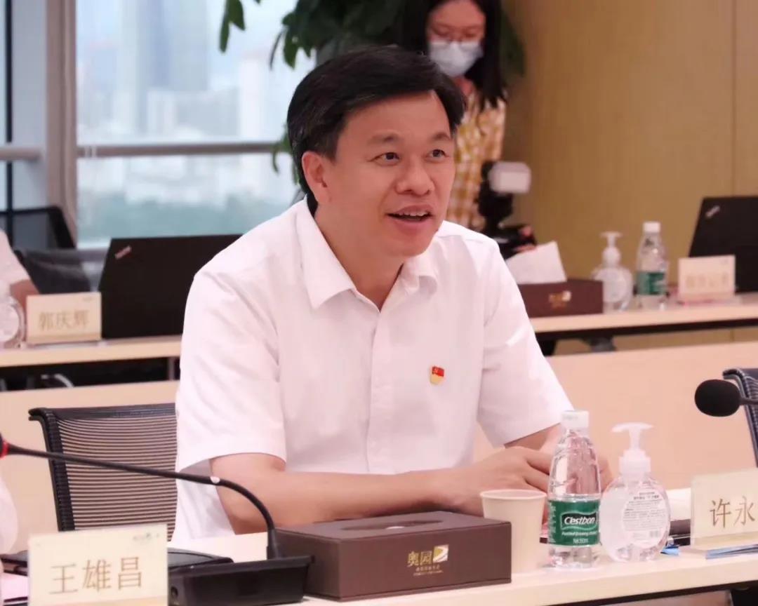 5月26日下午,广西壮族自治区钦州市委书记、中国(广西)自由贸易试验区钦州港片区党工委书记许永锞一行在广州市番禺区委副书记、区长陈德俊的陪同下,莅临MK官方网页版集团大厦与中国MK官方网页版集团党委书记、总裁郭梓宁等座谈交流。双方就多个重点项目投资开发进行了深入沟通,并达成初步共识。