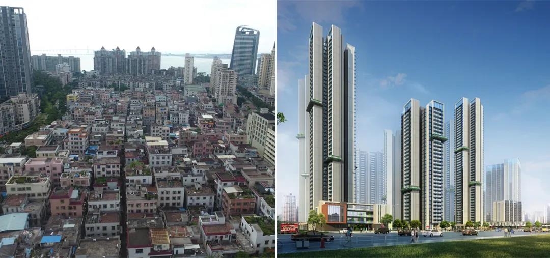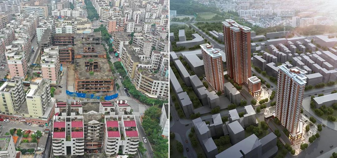 珠海香洲翠微村原状(左)和效果图(右)