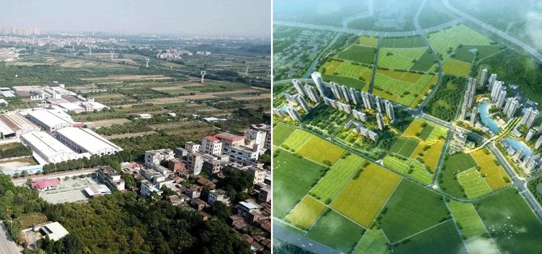 珠海拱北联安村原状(左)和效果图(右)