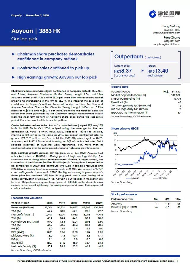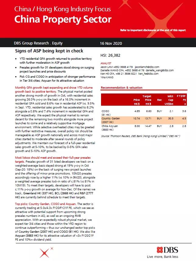 富瑞金融、星展银行、银河-联昌证券、建银国际:2020年全年合同销售达标在望