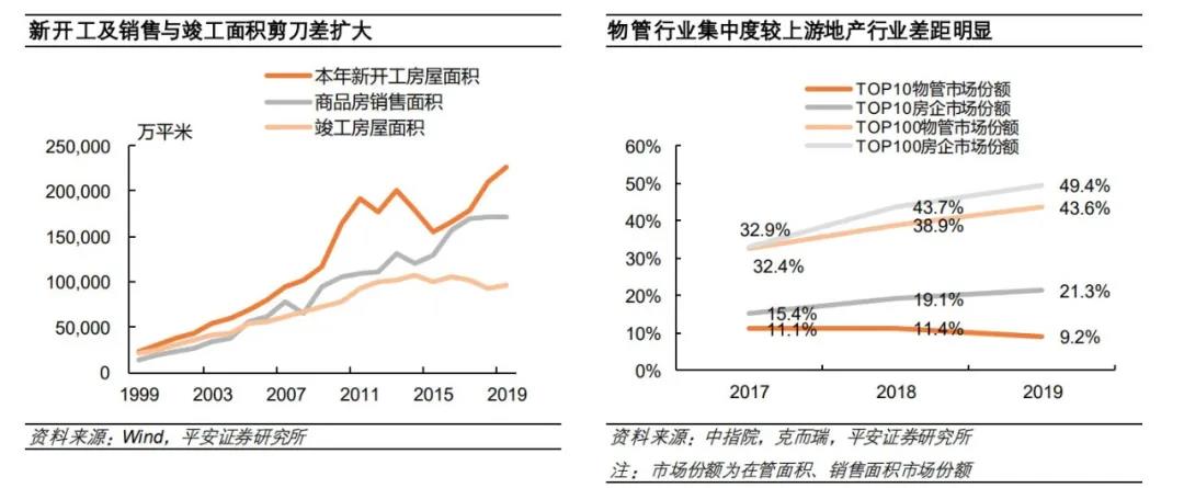 存量方面,据测算,2019年末存量住宅面积约330.9亿平米,远高于住宅物业在管面积(约165.1亿平米)。入驻尚未配备物业服务的存量盘,为物管企业实现规模诉求的重要途径之一。
