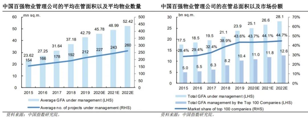 不过,今年公共卫生事件也提升了业主对优质物管的服务及品质要求,很多中小物管将面临口碑、品牌的挑战、科技带来的体验挑战、成本刚性上升的压力。这将加速存量物业从低品质到高品质的转换,龙头物业管理公司的市占率逐步提升。中国指数研究院数据显示,百强物业管理公司的市场份额由2015年的28.4%升至2019年的43.6%;十强物业管理公司的市场份额由2015年的7.6%增至2019年的9.2%。