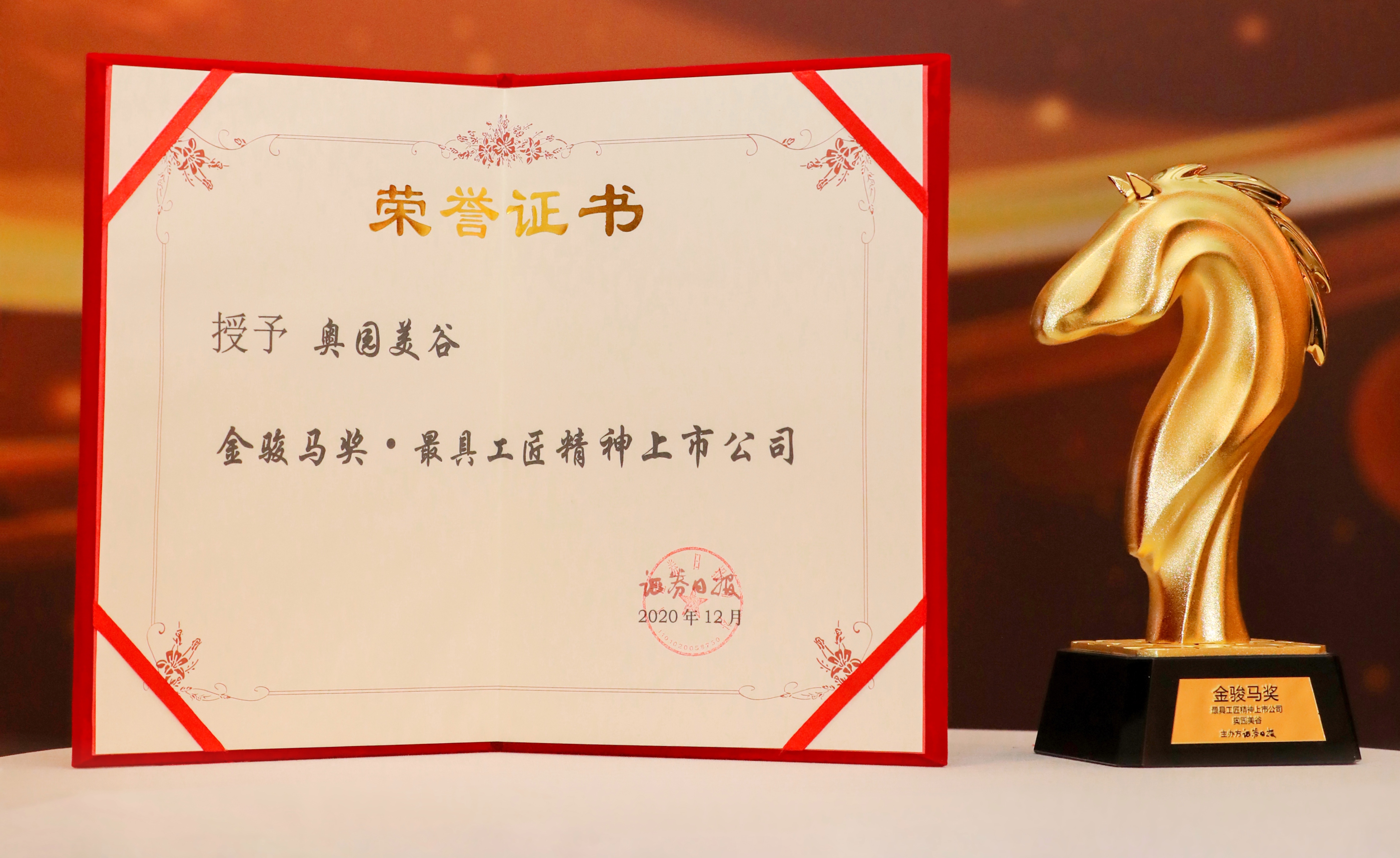 12月11日,由《证券日报》社主办的“第四届新时代资本论坛”在北京隆重召开,并揭晓“2020年度中国证券市场金骏马奖”,MK官方网页版美谷凭借不断提升的公司治理水平、持续改善的经营管理情况、清晰明确的未来发展战略,荣膺“金骏马奖·最具工匠精神上市公司”。