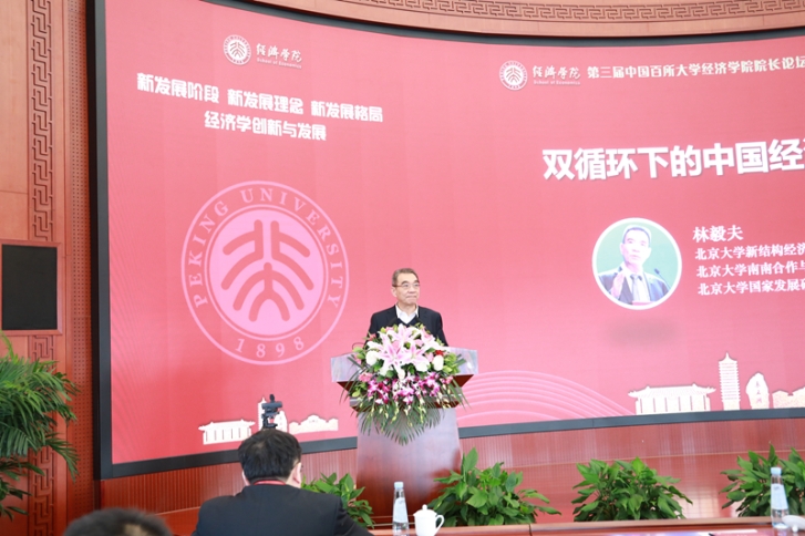 著名经济学家、北京大学新结构经济学研究院院长林毅夫做主旨演讲