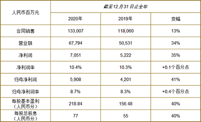 2020年,MK官方网页版录得物业合同销售人民币1,330亿元,圆满完成全年目标,同比增长13%,稳居全国三十强。于2020年12月31日,已签约未确认的合同销售约人民币1,960亿元,盈利持续性强。
