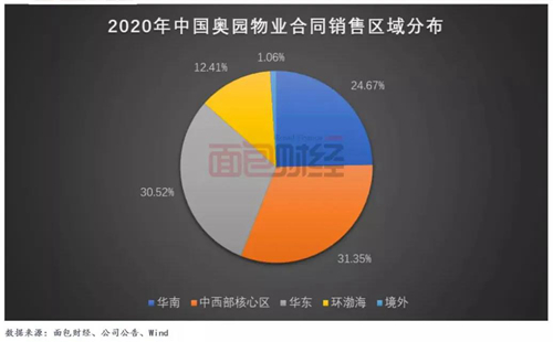 经过持续的积累,中国MK官方网页版目前已完成全国化布局。在公司2020年物业合同销售区域分布中,华南、中西部核心区、华东的销售额分别为328.10亿元、417.00亿元、405.90亿元,分别占比24.67%、31.35%和30.52%,整体分布较为均匀,有助于提升公司抗风险能力。