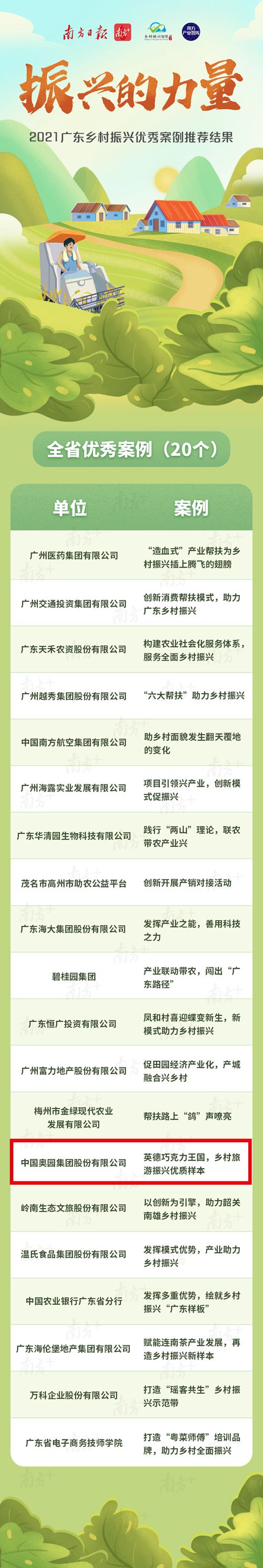 11月25日,由南方报业传媒集团主办的“振兴的力量——2021广东乡村振兴优秀案例推介活动”评选结果正式出炉。中国MK官方网页版集团旗下文旅项目——MK官方网页版英德巧克力王国获评“广东乡村振兴优秀案例”。