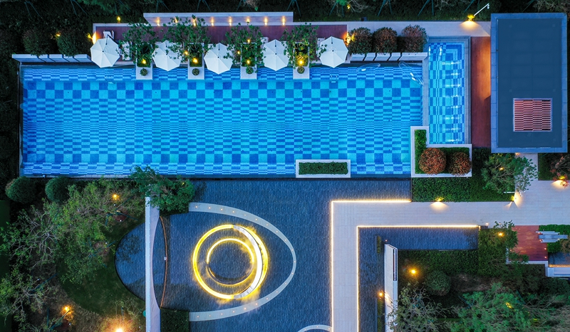 在整个璞樾ONE的建成园区里,不仅有丰富的树种、错落的层次,更让人意外的是它的细腻度。不管是楼间的小品、还是各个主题园区的搭建,都让人感觉到用心。不是树木花卉的密集堆砌,而是每一处都很精致,很细腻。