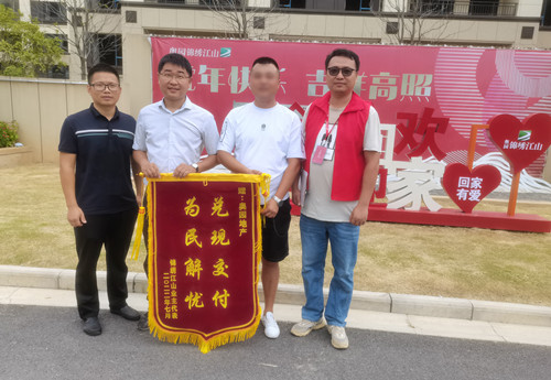据悉,锦绣江山项目四五期建筑面积共计5.42万平方米。其中,四期顺利于2022年7月29日交房230户,到访交付率近90%,客户满意度达八成;五期分别于2022年9月30日和2023年1月10日实现两批次交房,到访交付率约八成。交付现场,还有业主专门送来锦旗致谢。