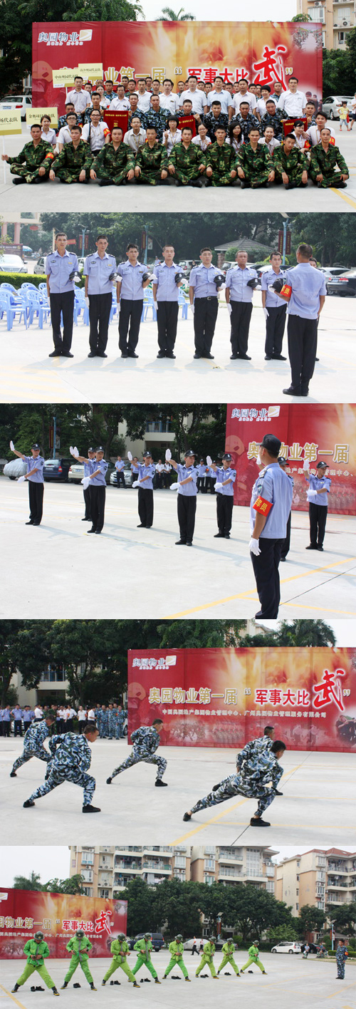 (2012年7月31日——广州)为进一步提升物业安全管理服务品质,MK官方网页版物业在金奥项目运动城前广场举办“MK官方网页版物业第一届军事大比武”活动。本次比赛是MK官方网页版物业第一次围绕“八一”建军节主题举办的大型活动,旨在提高公司安全管理团队的服务品质,提高秩序维护员的个人军事技能,为团队建设及安全维护管理打下扎实的基础,同时考核参赛队伍的指挥协调能力,锻铸团队精神。