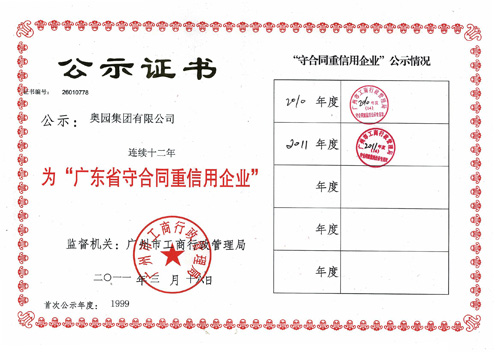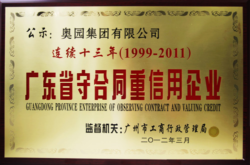 (2012年6月12日——广州)中国MK官方网页版地产集团再次荣获由广州市工商行政管理局、广州企业信用促进会评定颁发的“广东省守合同重信用企业”荣誉称号,而这是MK官方网页版集团连续十三年(1999-2011年度)获此殊荣。
