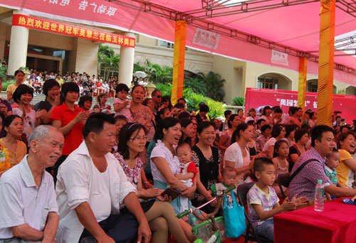 “世界冠军来啦!”在观众的欢呼声中,世界冠军莫慧兰在众人瞩目下闪亮登场,瞬间引爆全场。穿着蓝色休闲衬衫、牛仔裤的她显得十分亲切,现场观众踊跃参与,积极抢答莫慧兰的体操问题,赢取其亲笔签名的T恤。在现场访谈中,莫慧兰表示,非常荣幸参加玉林MK官方网页版组织的本次活动,对玉林MK官方网页版配套规划的前瞻性和完备性非常欣赏,希望大家在这样一个“运动就在家门口”的品质楼盘,一起享受健康和运动的快乐!