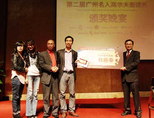 郭梓宁先生代表养生酒店向获奖嘉宾赠送价值20000元的奖品
