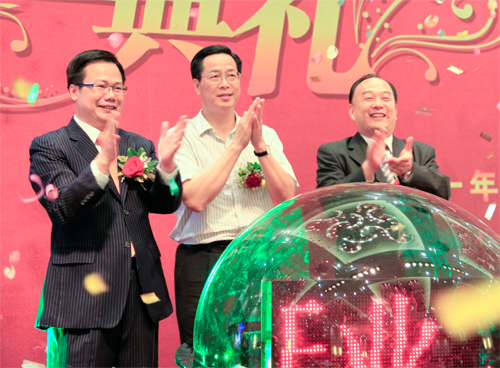 广州市副市长、南沙区委书记陈明德,广东省卫生厅副厅长耿庆山和中国MK官方网页版地产集团董事局主席郭梓文共同启动养生城开业!