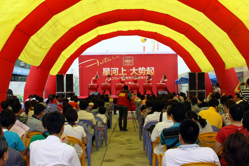 (2011年5月2日——中山)中山MK官方网页版二期“MK官方网页版星河”火爆开盘,首批高层洋房户型面积囊括了76-122㎡的多样户型,开盘当日尽管天空下起了毛毛细雨,却依然挡不住购房客户的火爆热情,销售现场人头攒动,蓄势待发。开盘当天劲销九成,迅速点燃了五一中山楼市的一把旺火,再写热销传奇。