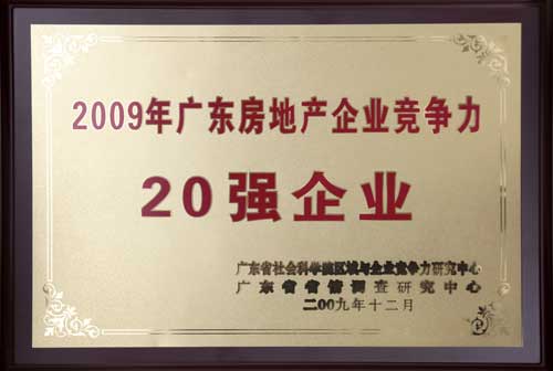 中国MK官方网页版地产集团荣获“2009年度广东房地产企业竞争力20强”称号