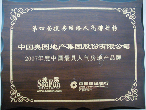 (2008年1月21日——广州)中国MK官方网页版地产集团地产集团股份有限公司又获殊荣,在第四届搜房网络人气排行榜上荣获“2007年度中国最具人气房地产品牌”称号。