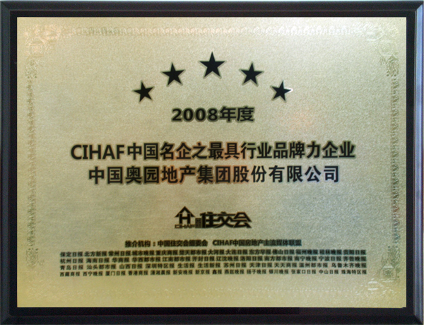 CIHAF中国住交会(中国国际房地产与建筑科技展览会),是中国规模最大、非常有影响力的房地产年度综合大展,是全球三大房地产专业会展之一。“2008年度中国名企”奖项为CIHAF住交会“三名(名企、名人、名牌)”大奖之一,由中国住交会组委会、来自全国40多家主流媒体组成的CIHAF中国房地产主流媒体联盟联合颁发,秉持公开、公正的原则,旨在表彰本年度在中国房地产领域中做出突出贡献的领袖企业,其评选结果具有客观性和权威性。