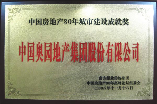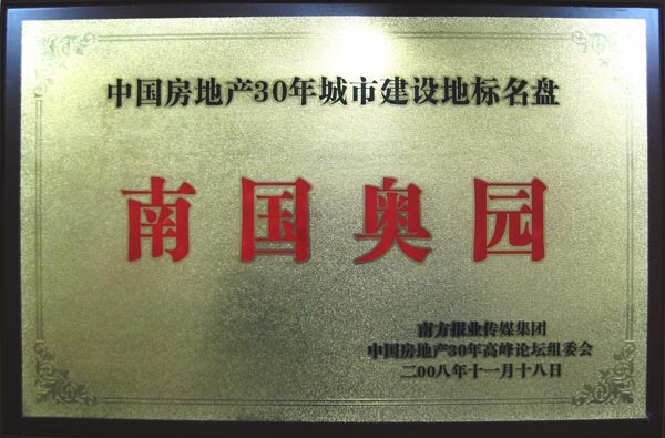 (2008年12月12日——广州)中国MK官方网页版地产集团股份有限公司(股票编号:3883)在南方报业传媒集团、中国房地产30年高峰论坛组委会主办的中国房地产30年颁奖盛典上荣获“中国房地产30年城市建设成就奖”荣誉,与此同时,集团董事局主席郭梓文先生亦荣获“中国房地产30年十大杰出贡献人物奖”,集团旗下的南国MK官方网页版荣获“中国房地产30年城市建设地标名盘”称号。