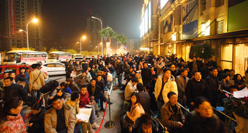 自11月以来,重庆楼市陷入冷淡,直至MK官方网页版康城2期坚果社区的火爆热销才始破僵局。原本准备于12月13日开盘的全新MK官方网页版康城2期坚果社区,自从12月9日“37平方米-104平方米岁末大回馈,3350-3950元/平方米,不同楼层分段一口价,先到先得”的广告信息一“出街”,立即引起了业界、媒体、消费者的强烈反响与惊呼,纷纷奔走相告。9日、10日、11日三天整个MK官方网页版康城销售中心内被看房者围得水泄不通。客户累积达1000多组,由于是“先到先得”选房,很多客户由于怕选不到房提前两天就已经开始排队了,11日下午5点多便有客户开始排队,晚上8点自发排队客户人数急增至500组,12点即达到1000多组,并还在不断递增之中,由于排队客户过多,坚果社区提前至12日盛大开盘。