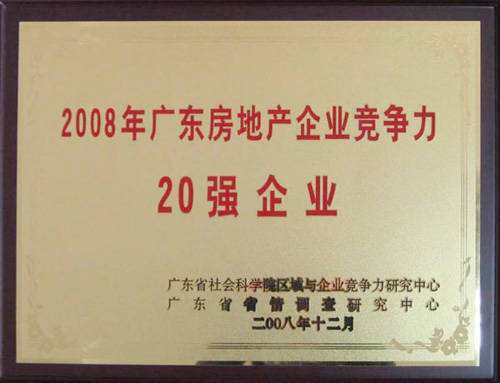 中国MK官方网页版地产集团入选2008年广东房地产企业竞争力20强