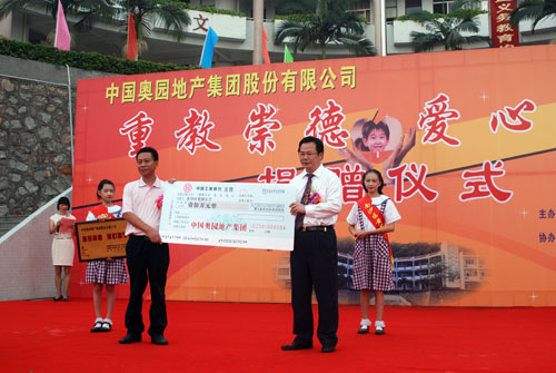 (2008年9月5日——广州)2008年9月5日上午,广州市南沙区黄阁小学彩旗招展,锣鼓喧天,全校师生与各界来宾欢聚大操场。中国MK官方网页版地产集团股份有限公司“重教崇德,爱心助学”捐资100万元的捐赠仪式在这里隆重举行。这是MK官方网页版集团继今年5月份向四川地震灾区捐款330多万元之后的又一次重大捐献活动。