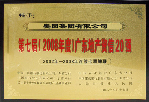 中国MK官方网页版地产集团荣获“第七届(2008年度)广东地产资信20强”称号