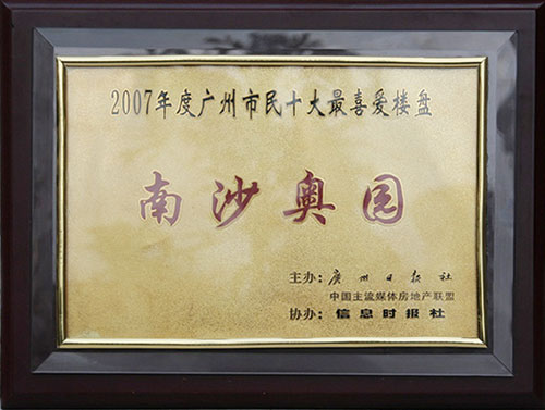 南沙MK官方网页版喜获“2007年度广州市民十大最喜爱楼盘”年度大奖