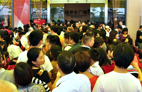 活动现场,客户挤满MK官方网页版养生广场营销中心