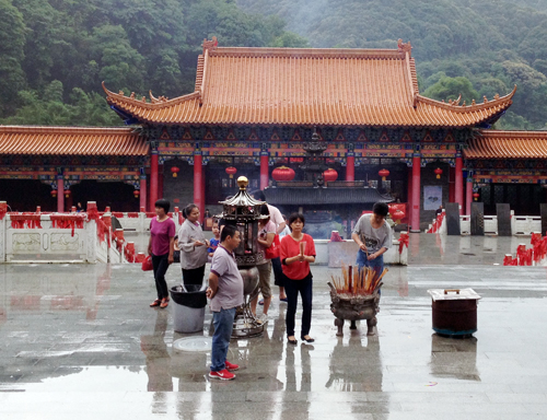 业主游览青翠山林间的王山寺