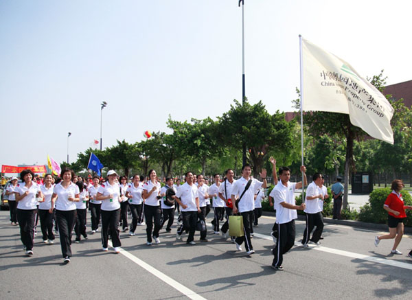 当天上午,作为万人长跑活动主会场的广州白云国际会议中心西门广场,红旗迎风招展,彩球腾空飘舞。MK官方网页版健儿身穿统一的运动服装,早早组成一个整齐方阵,和立白集团、香江集团、海印集团等广州著名企业的代表队一起,接受广州市委、市政府领导与组委会领导的检阅。