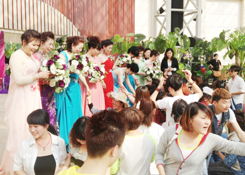 辣妈们接受粉丝的献花