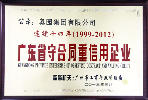 (2013年06月19日——广州)中国MK官方网页版地产集团再次荣获由广州市工商行政管理局、广州企业信用促进会评定颁发的“广东省守合同重信用企业”荣誉称号。这是MK官方网页版集团连续十四年(1999-2012年度)获此殊荣。
