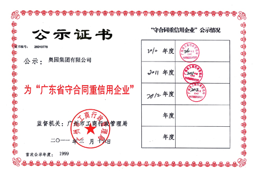 “守合同重信用企业”公示评选活动是广州市政府自1987年开展维护社会主义市场经济秩序的一大举措,是推进企业信用体系建设工作的重要内容,也是政府服务企业的一项重要举措。此评选活动自开展以来,得到了社会各界和广大企业的充分认可,此奖享有盛誉,被认为广东省工商界最有公信力奖项,已成为广东省企业信用体系建设的重要组成部分。