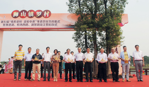 (2013年10月13日——佛山)由MK官方网页版·公园一号协办的佛山狮山镇罗村第七届“情系桑梓温爱中港”孝德文化节开幕式暨孝德湖、机场西路、湖景路竣工剪彩仪式在孝德湖畔隆重举行。