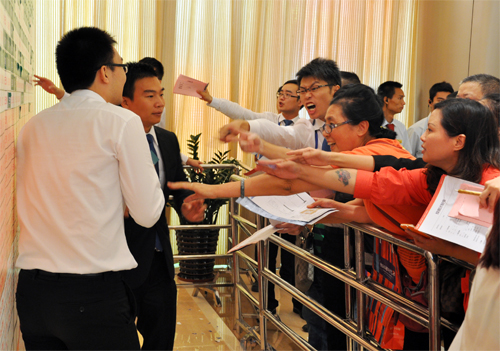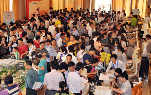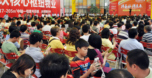 当天早上7点,南站地区车流犹如长龙,项目周边道路排满私家车等候进入临时停车场。8点钟,距离开盘还有一个小时,现场等候区早已人山人海,上千名客户手里紧紧地拿着摇签号。经统计,当天近两千名客户到场,掀起了一场枢纽商业物业抢夺大战。