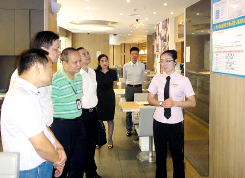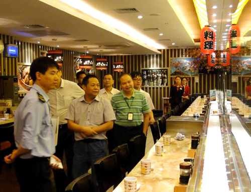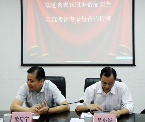 (2013年10月31日——广州)广东省食品药品监督管理局党组成员、广东省食安办副主任吴圣明及省餐饮服务食品安全示范建设工作办公室相关领导,在市食品药品监督管理局副局长庞庆宁、番禺区副区长张力仁及番禺区食品药品监督管理局相关人员陪同下莅临MK官方网页版广场就餐饮服务食品安全示范创建工作进行调研。MK官方网页版广场商业物业管理公司总经理潘锦川先生接待了调研组领导一行,并介绍了相关创建工作情况。